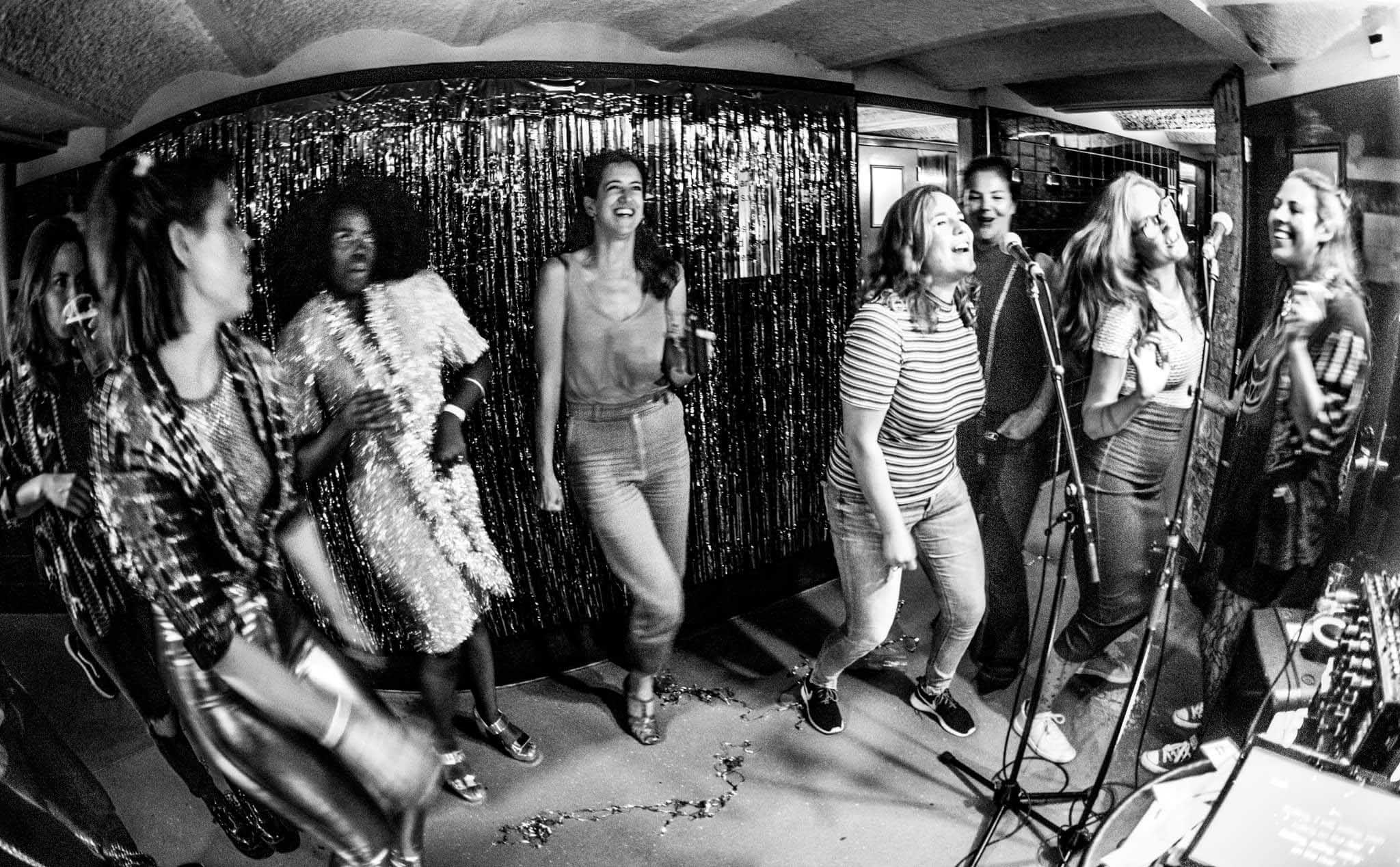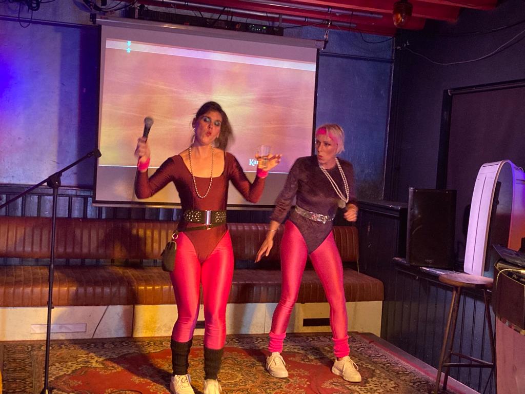 A karaoke party like no other. With Carmel as host, partystarter and motivator, this will be a night to remember. Accompanied by her ‘sidekick’, they will make sure that everything runs smoothly and that the microphone will be occupied at all times. By arriving in style (aka dressed up and groomed like they stepped out of a music video) they’ll get this party started before you know it. Carmel makes sure that you will be able to put aside your doubts and fears by showing that it’s liberating to sing together. On the karaoke floor we are equals; we all come to sing, dance and enjoy ourselves. If you still need a little more time to find the courage, no problem, she’ll gladly sing some songs for you, ‘cause the show must go on!